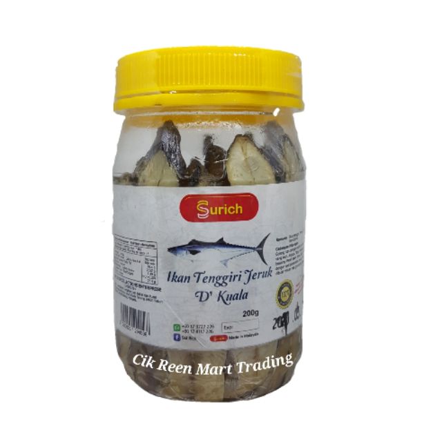 Kelebihan ikan tenggiri jeruk Surich adalah kami hanya menggunakan ikan segar dengan perut dan insang dibuang serta dicuci sehingga bersih sebelum dijeruk menggunakan resipi istimewa. 08-999 640 999 Rajawali -. Hasilnya ikan tenggiri jeruk kami yang halal tidak berbau hanyir lebih sedap dan mampu buka selera dengan olahan pelbagai jenis masakan katanya.